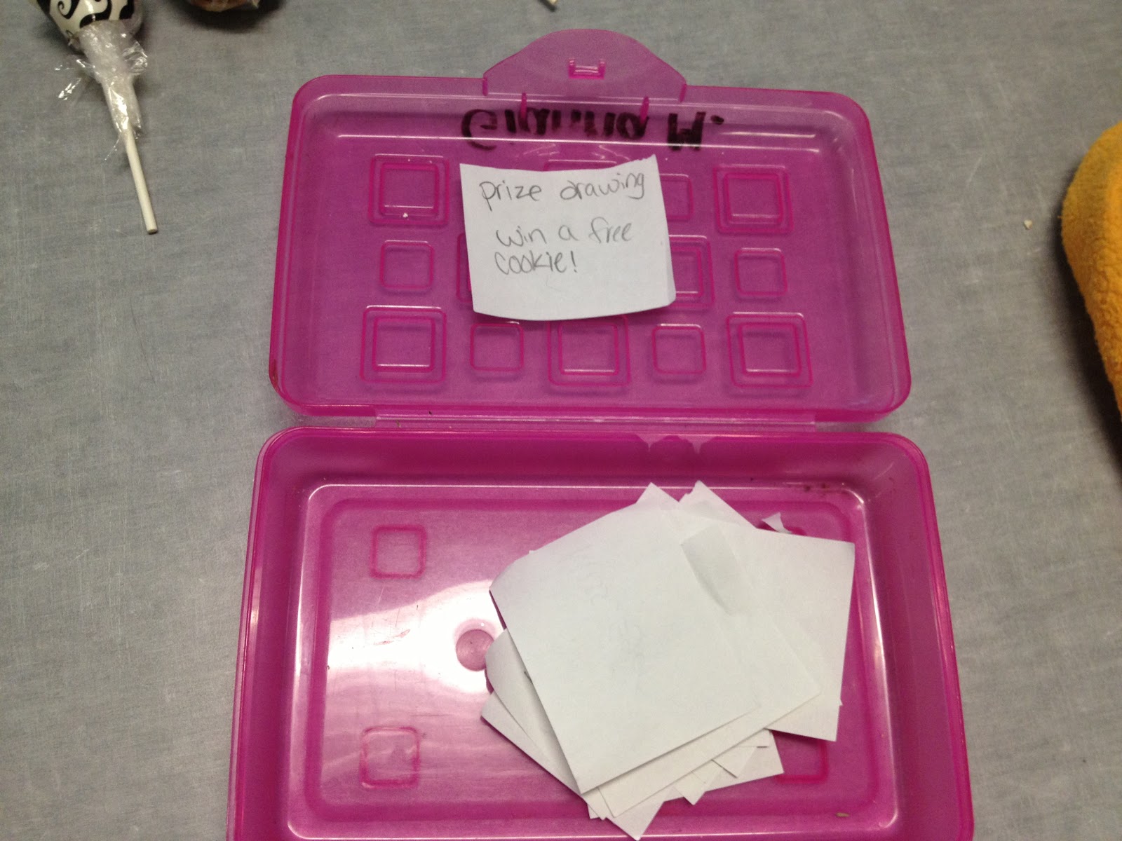 | 这个女孩的想法是对的!如果你买了2块饼干,你就可以抽签赢得一块免费饼干。我没有赢。 |