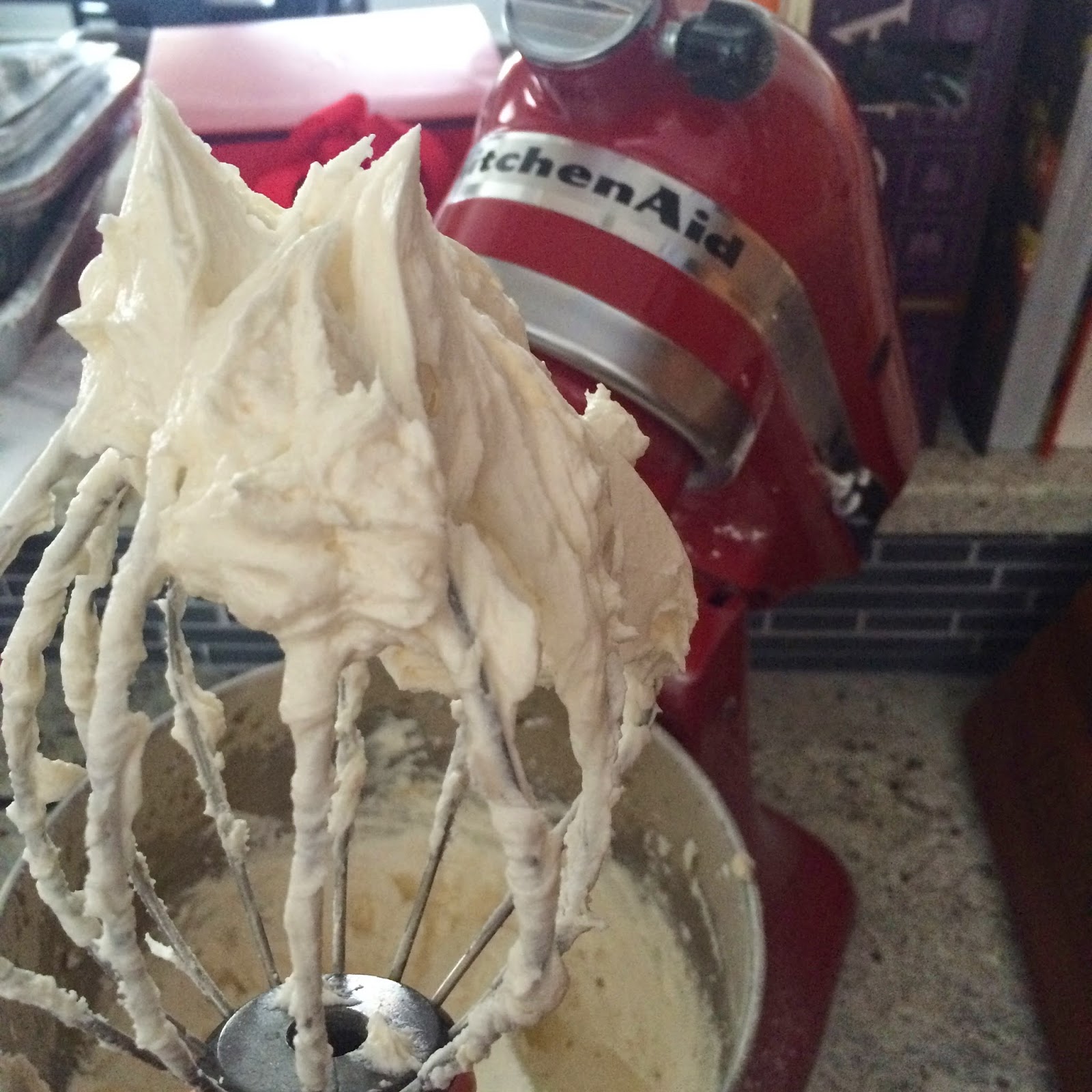 - 半杯浓奶油,一次加一汤匙。8汤匙在1/2杯(你可以根据你想要的糖霜厚度而改变添加的量)