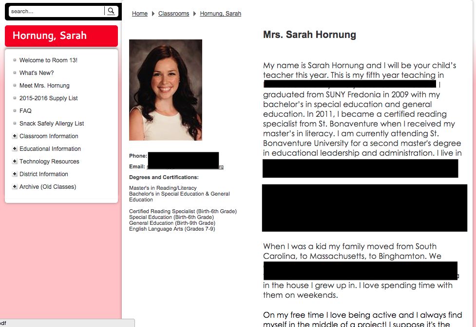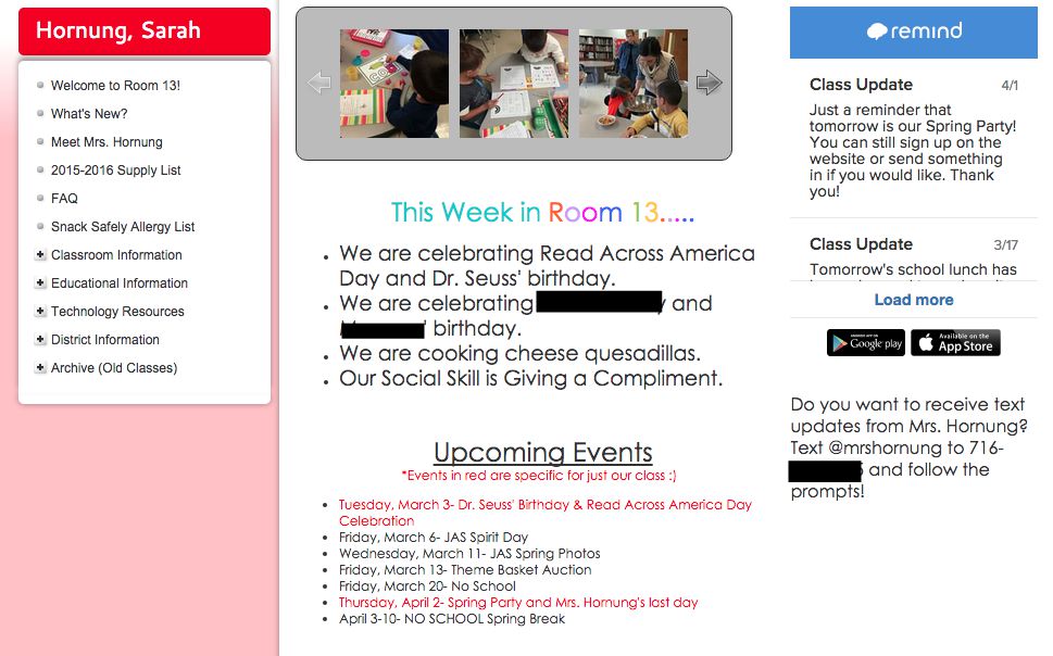当你进入我的教室网页,我包括所有的信息,家长可能会寻找。电话号码、电子邮件、社交媒体和我的“最近怎么样?””页面。