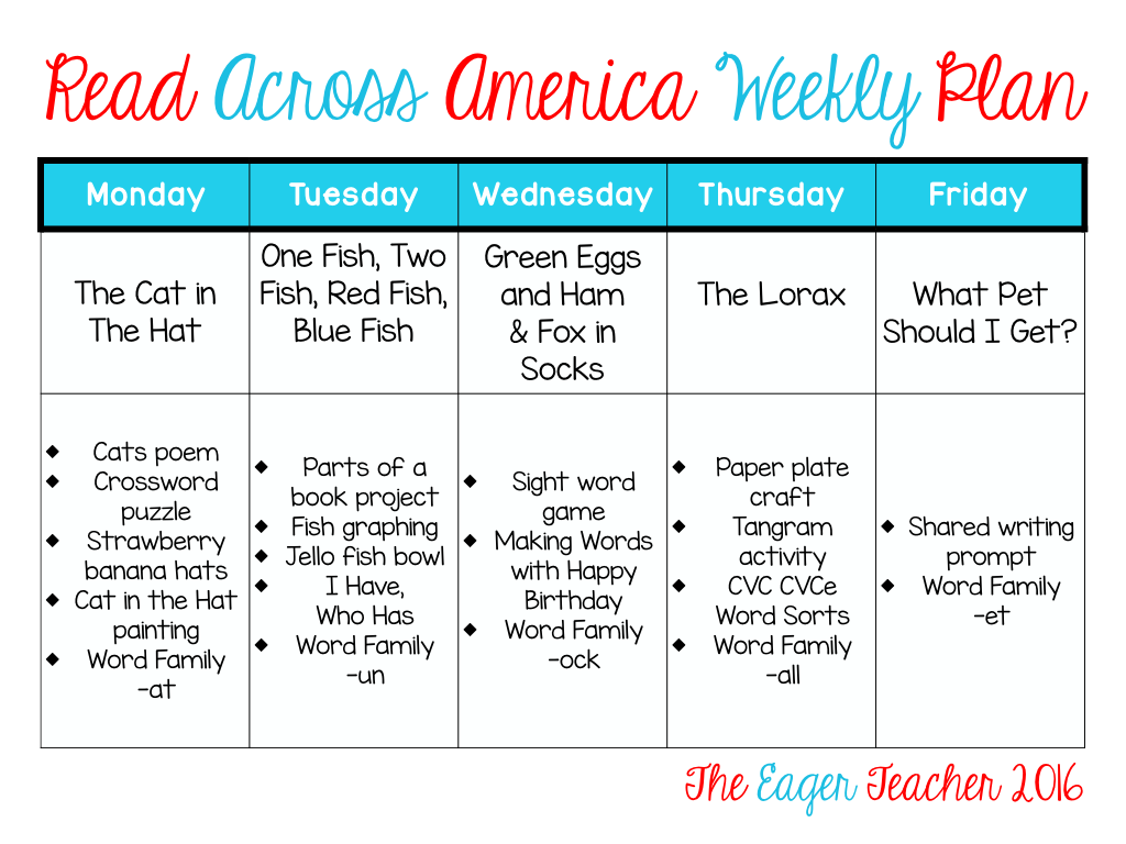 这是我最喜欢的几个星期的一年之一,也是我最喜欢的单位教给孩子们一个。当我们庆祝苏斯博士的生日和读取穿越美国每年,我想起读alouds有多么重要,我的学生是多么喜欢他们。这是可悲的读取alouds往往首先,当我们试图将一切的去了。苏斯博士的故事是最好的读alouds因为他们是愚蠢的,有趣的,充满绕口令。我还记得我爸读我福克斯在袜子时,我是一个小女孩。他的时候我5岁的时候记住了整本书。我曾经让他读它一遍又一遍。我们有多少书可以说些什么?