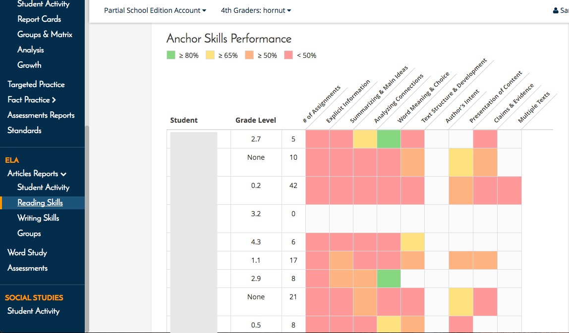 我喜欢一个网站,它能给我提供有价值的数据,帮助指导我的学习。作为一名特殊教育教师,我总是在寻找更多的数据来制定目标。前排分享每个学生在共同核心锚定技能会议熟练程度方面的进展。