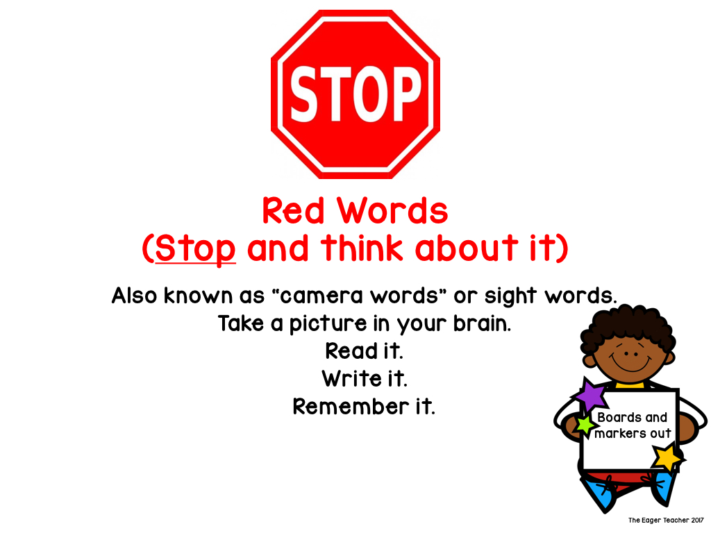 “停止”字样的话,学生们鼓励“停下来思考”这个词是什么。这些是常见字或高频词。鼓励学生采取的这些话与他们大脑中的图片,因为停止词并不总是能够试探。